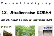 30.8.07 - Ausschreibung zur 12. int. Studienreise 2008 nach Korea