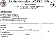 30.8.07 - Anmeldung zur 12. int. Studienreise 2008 nach Korea