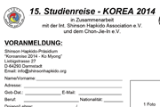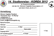 24.4.12 - Formular für die VORANMELDUNG / Interessenbekundung, zur 15. Int. Shinson Hapkido Studien-Reise nach Korea 2014 - (Datum: 21.8. - 13.9.2014)