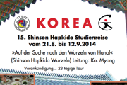 24.4.12 - Vorankündigung zur 15. int. Shinson Hapkido Studien Reise 2014 nach Korea, Gesamtleitung: Sonsanim Ko Myong. (Neues prov. Datum: 21.8. - 13.9.2014)