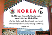 10.9.13 - Vorankündigung zur 16. int. Shinson Hapkido Studien Reise 2016 nach Korea, Gesamtleitung: Sonsanim Ko Myong. (Datum: 18.8. - 10.9.2016)