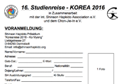 10.9.13 - Formular für die VORANMELDUNG / Interessenbekundung, zur 16. Int. Shinson Hapkido Studien-Reise nach Korea 2016 - (Datum: 18.8. - 10.9.2016)